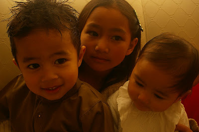 Azrul : Selamat HAri Raya..InsyaAllah tahun depan leh gi beraya umah nko kot :)Amy : Selamat Hari Raya jugak.. alhamdulillah... same to you too..(ida?yok2?amira?)Sape yek? : Mmg sarah macam muka amirah masa baby hehe... Konot : Selamat Hari Raya mzb .. macam cikda..? that's a first ..nanti aku belek gambo cikda kecik2 dolu :D